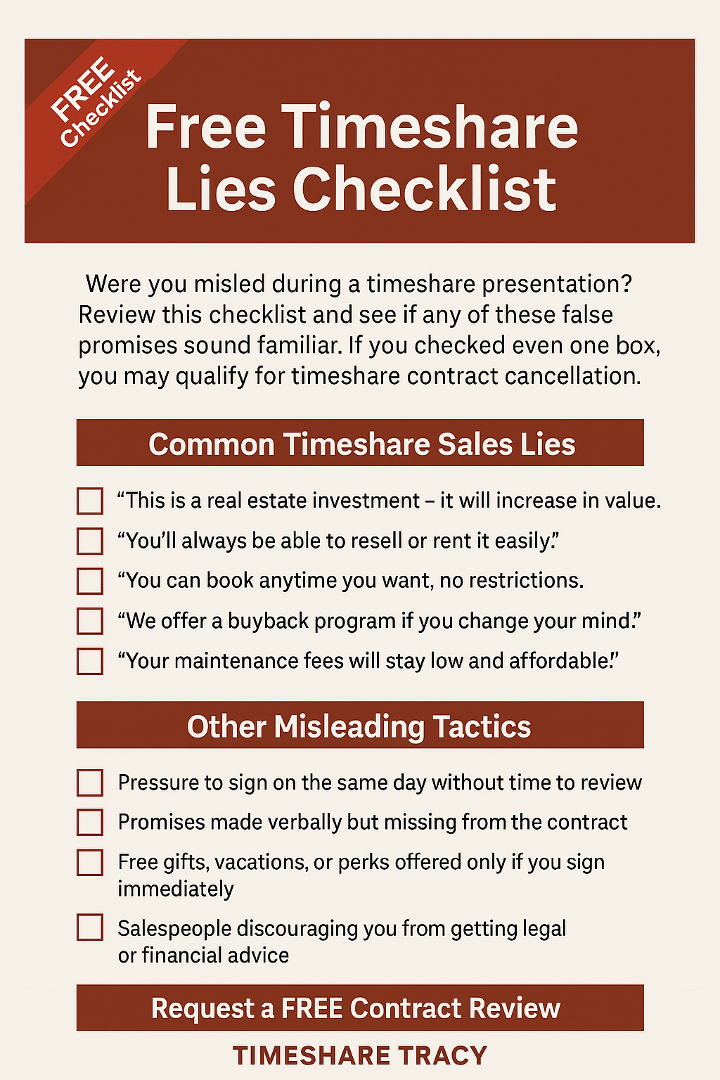 Timeshare Tracy helps Americans cancel their unfair timeshare contracts so that they can spend more time vacationing on their own terms.